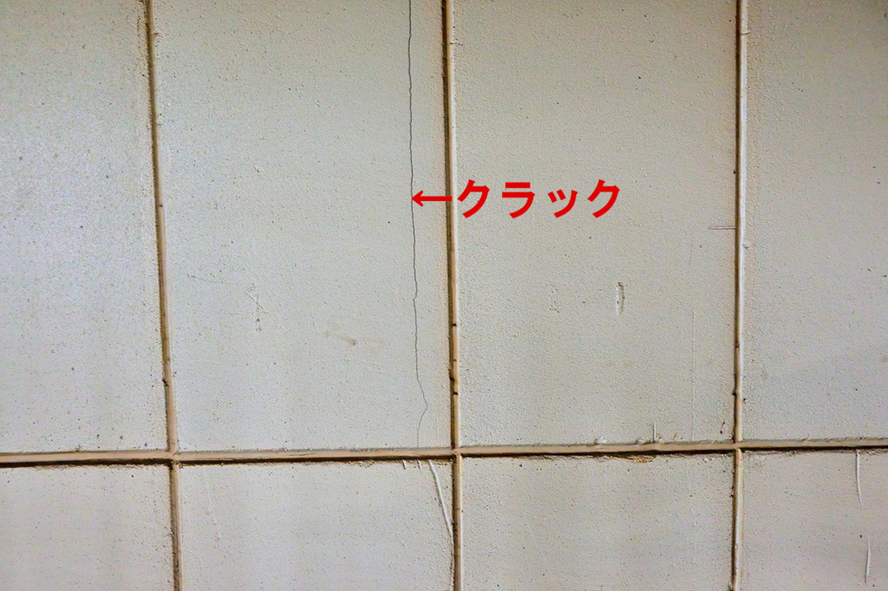 上の写真はALC外壁の建物内部から撮影したクラック・ひび割れです。