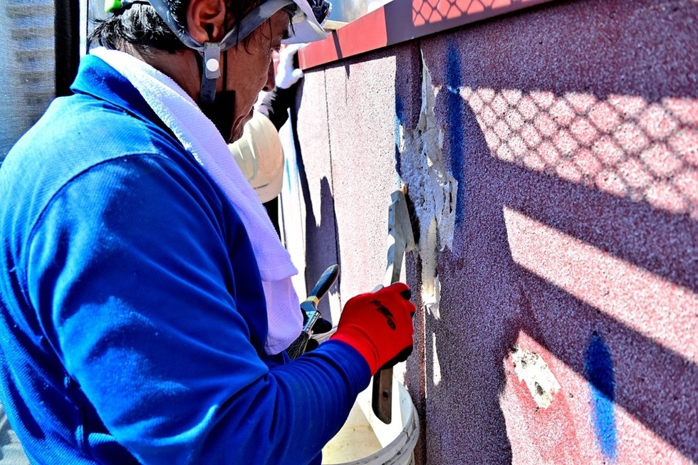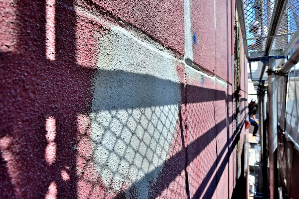ALCやパワーボードは、基材そのものにはほとんど防水性能が無いため、建築時に塗装した塗膜が経年劣化で防水性能が低下すると、基材に雨水が染み込みます。