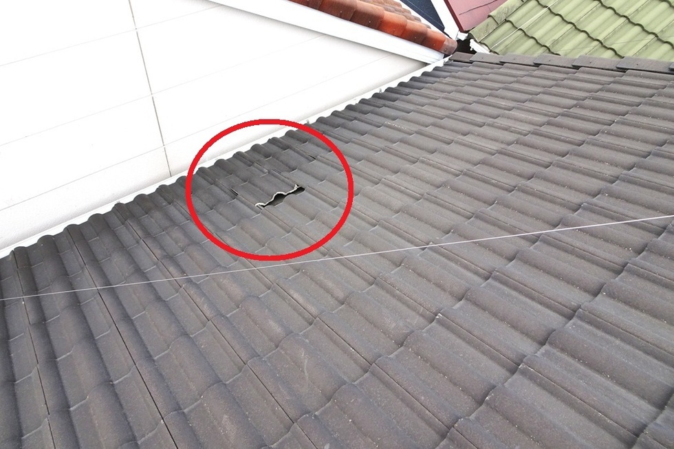 屋根瓦で最も気を付けて頂きたいのが、上の写真のように経年劣化で瓦が破損してずり落ちているケースです。