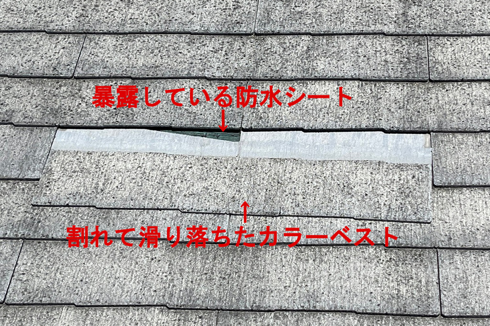 先ほども書きましたが、近年のノンアスベストカラーベストは脆弱で、このようなケースが増えていくと思われるため、カラーベスト屋根の定期的な点検は重要だと思われます。
