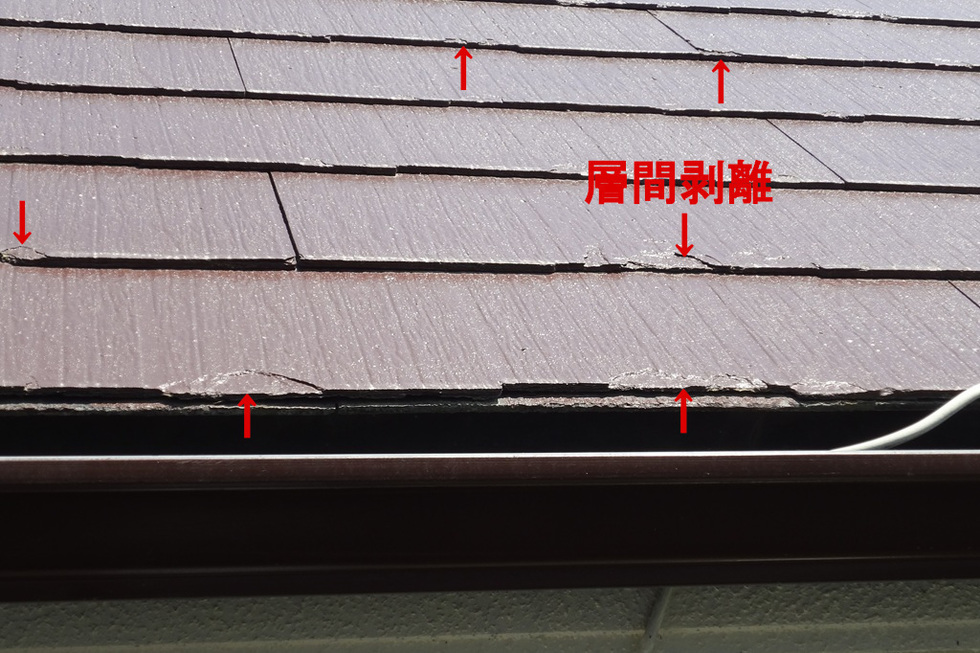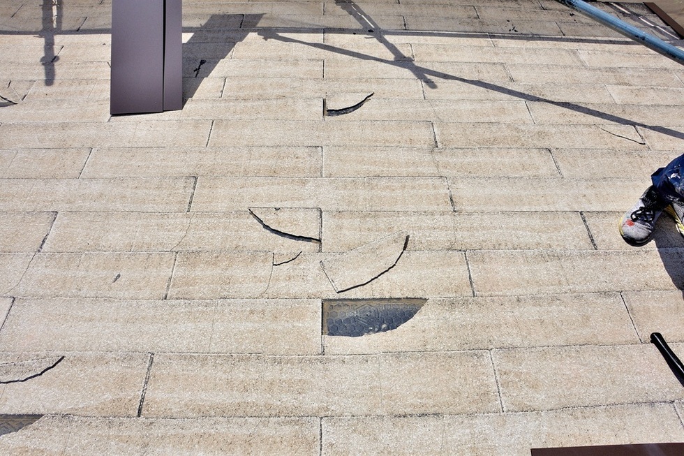 築後、早期に自然と割れてしまう場合や、築後10年が過ぎて屋根の改修時期になると、屋根に登って歩くだけでパリパリと割れてしまう事があります。