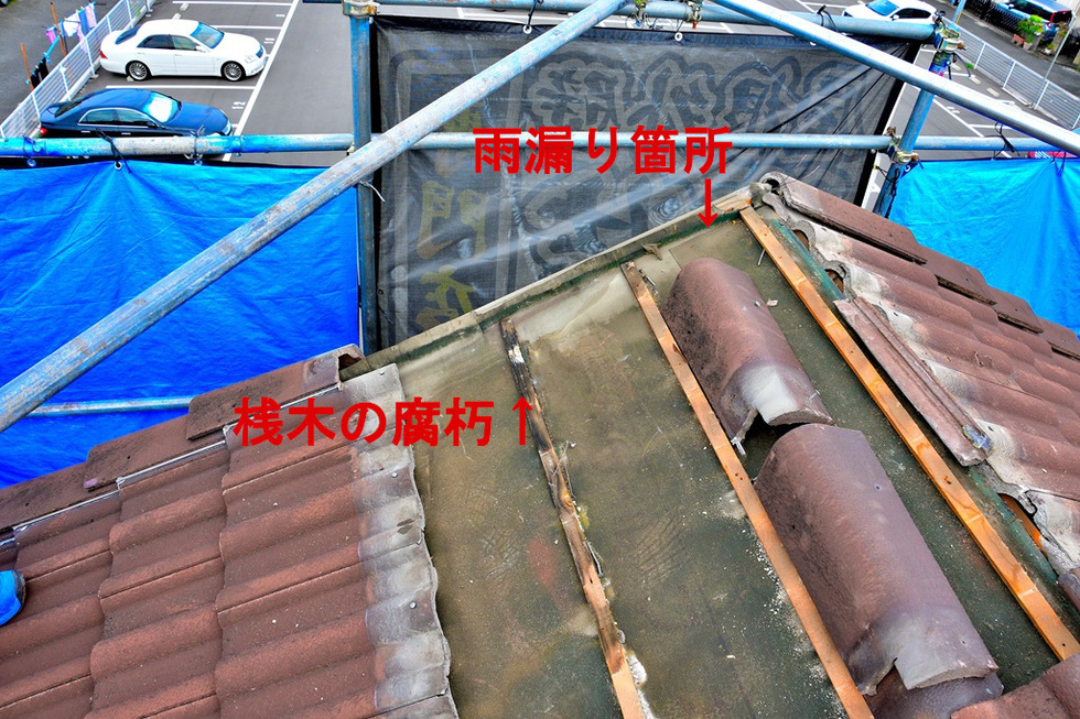 モ二エル瓦の場合破損後数年経っている為、防水シートに穴が開き雨漏りに繋がていました。