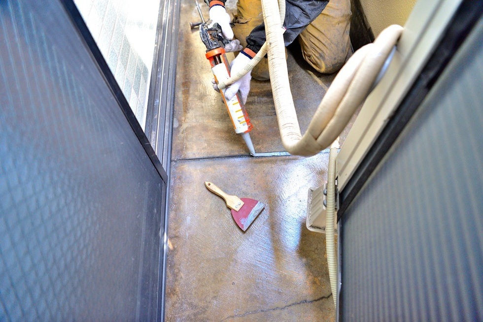 誘発目地や立ち上がりのクラックにシーリングを充填します。