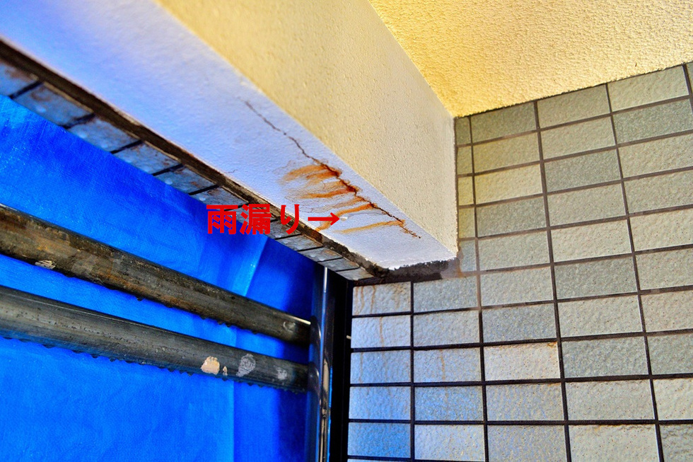 3階のベランダからの雨漏りが酷く、誘発目地と入隅のクラック及び笠木、排水口からの雨漏りが確認されました。