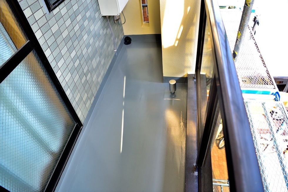 上の写真はベランダにウレタン防水工事を密着工法で施工した写真になります。