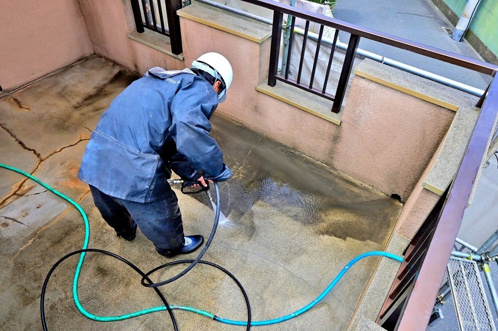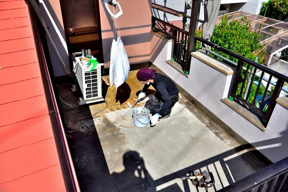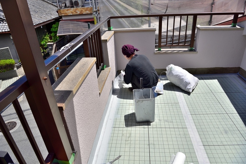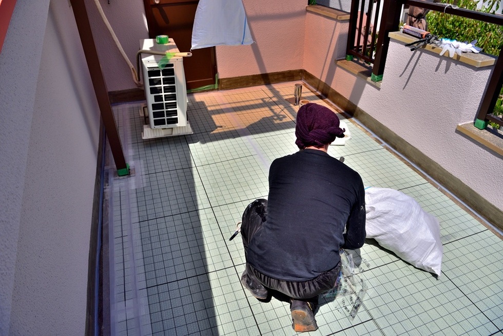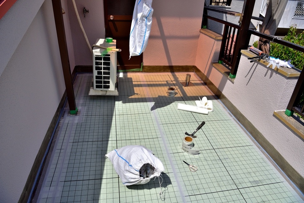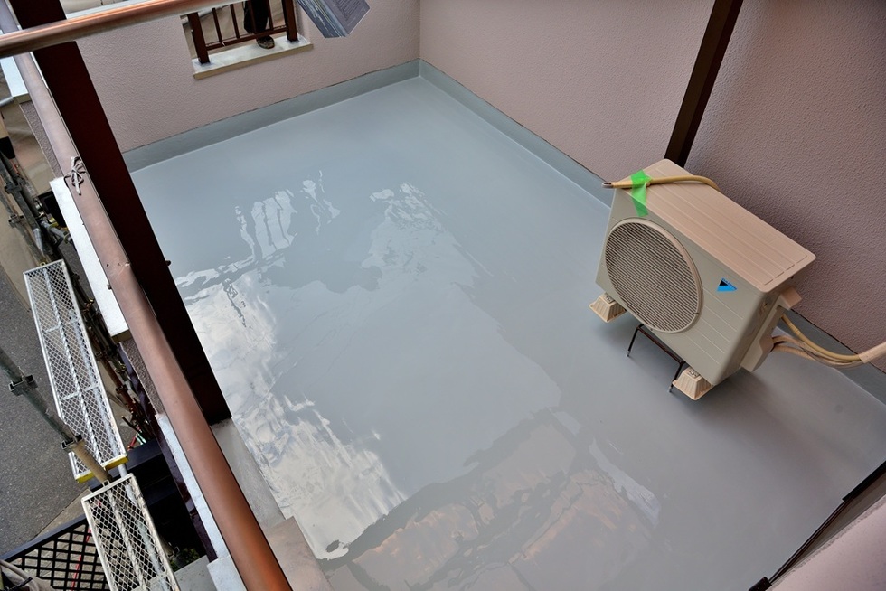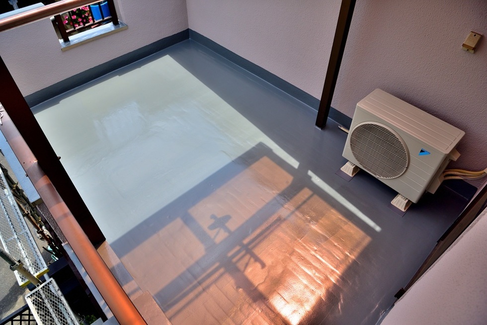 大阪市平野区でベランダウレタン防水通気緩衝工法の施工例です。