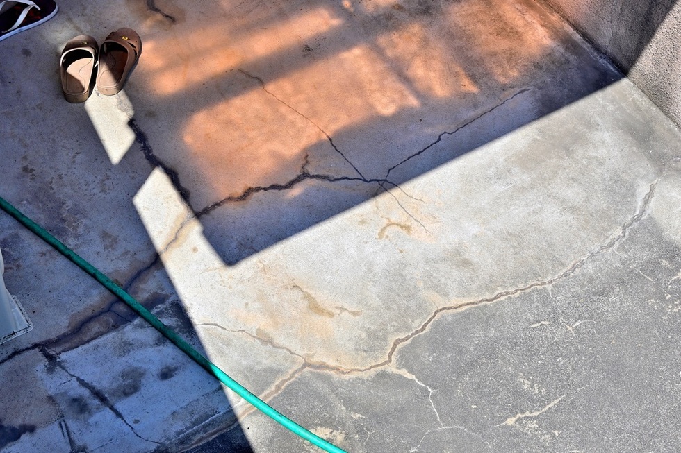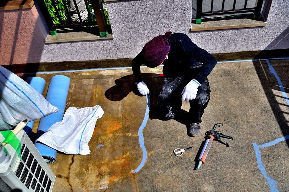 築年数が20年を超えるベランダの為、現況ベランダ表面や入隅のクラックが酷く、防水性能の低下から雨漏りが発生しています。